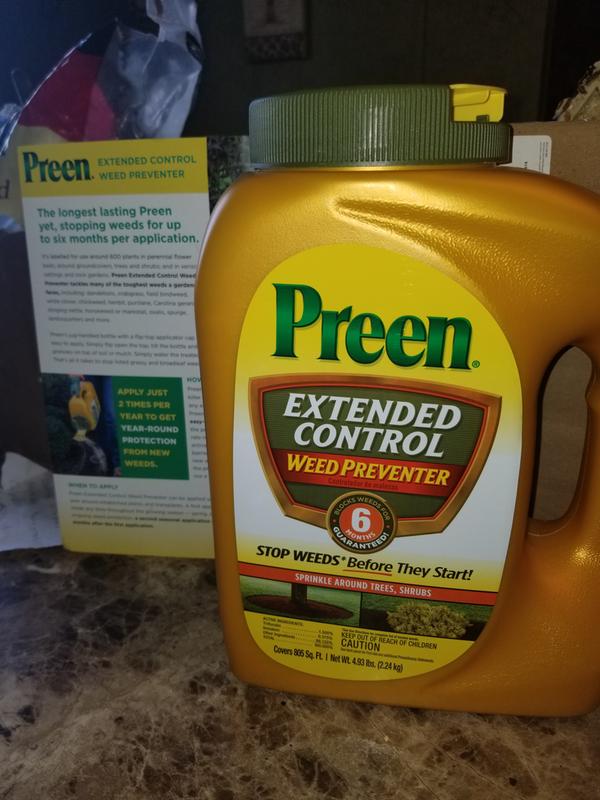 Preen Extended Control Weed Preventer / Preen extended control weed preventer.. We did not find results for: Check spelling or type a new query. Preen extended control weed preventer. Maybe you would like to learn more about one of these?